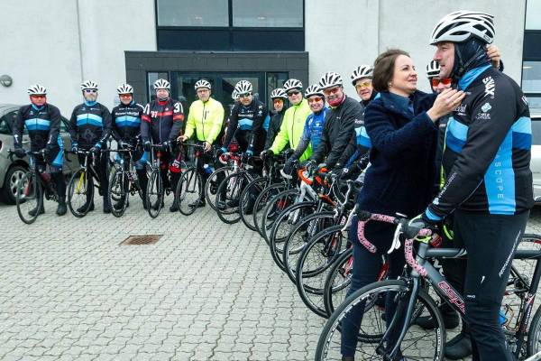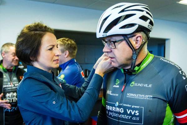 Efter at alle havde fået udleveret hjelm og fået den tilpasset, så den sad bedst muligt, blev der gjort klar til cykelturen.